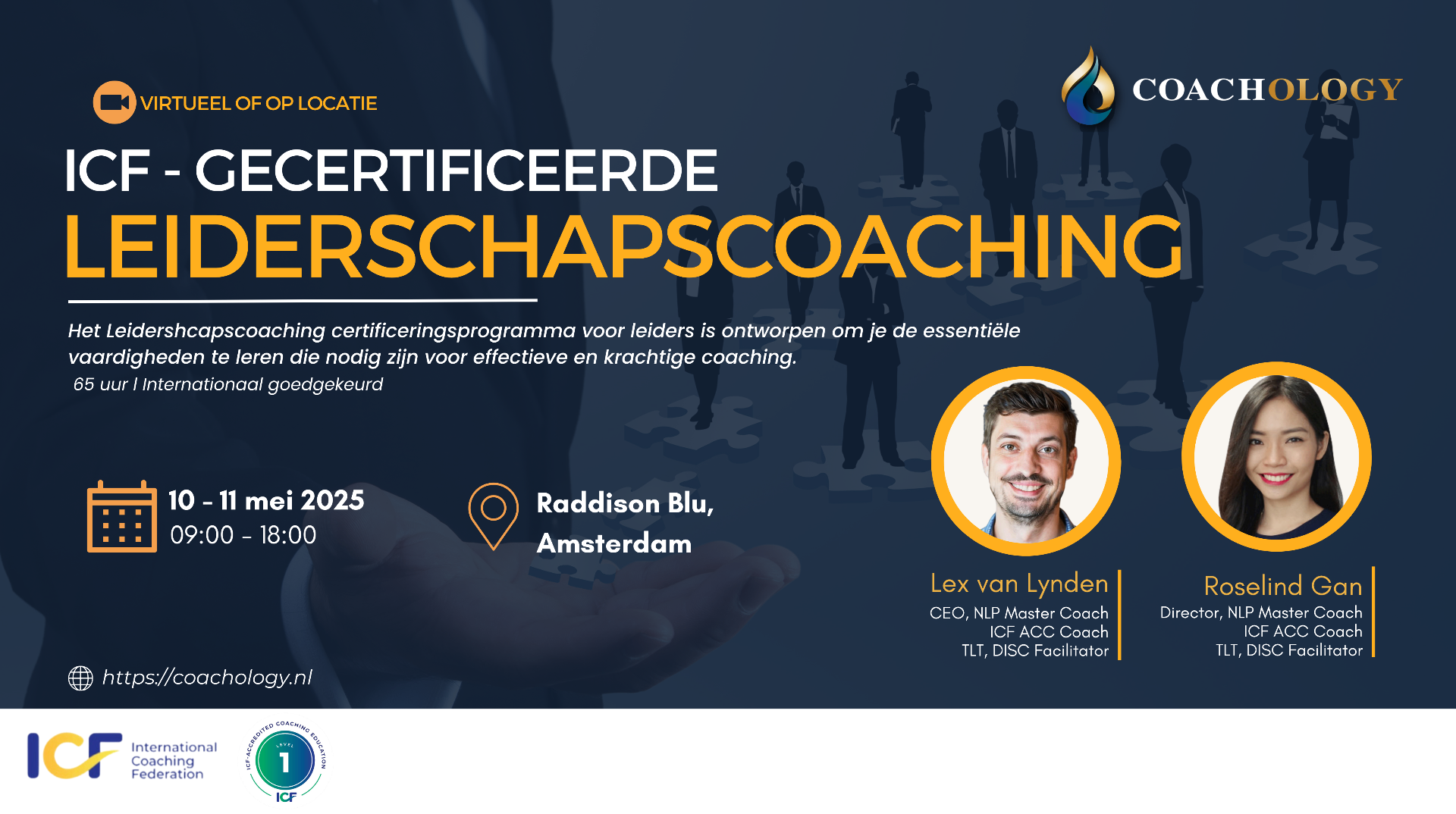 Volg een internationaal erkend programma dat volledig aansluit bij de hoogste normen van de International Coach Federation (ICF). Of je nu executive coach wilt worden of een sterke leider binnen je organisatie, deze certificering opent deuren naar internationale mogelijkheden.
